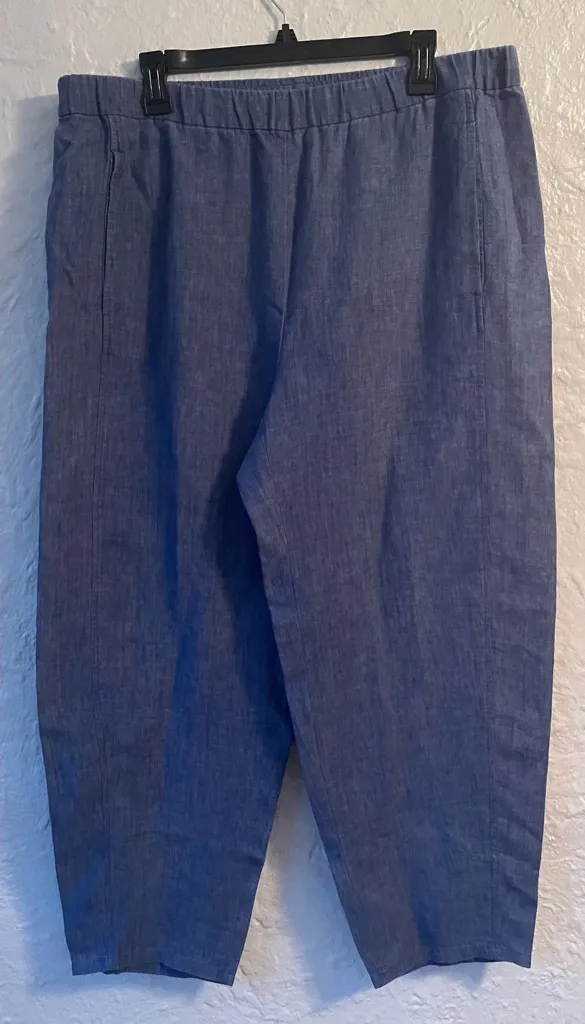 Eileen Fisher Linen Pants L Blue Chambray Pull On Elastic Wide Leg Lagenlook Size L - $48 - From Kate