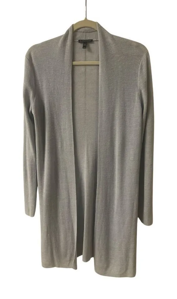Eileen Fisher long cardigan sweater Medium Powder blue color No closures Partial linen Walking slit... Show more