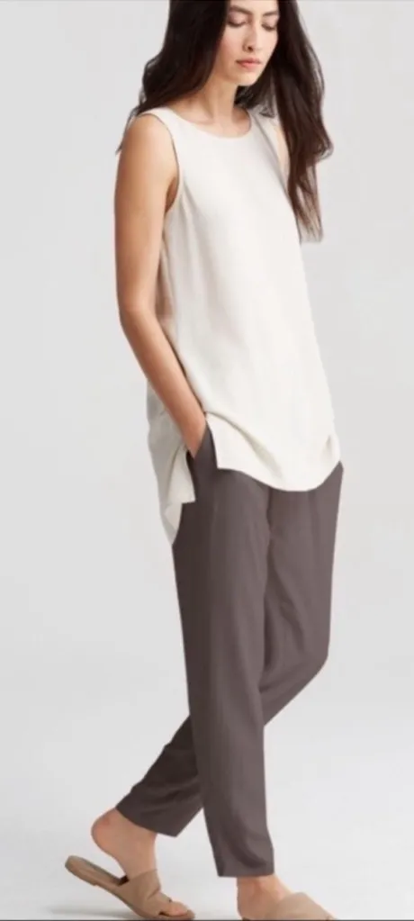 Eileen Fisher Luna Silk Georgette Crepe Slouchy Ankle Pants Mocha Taupe Size XS Mocha taupe brown... Show more
