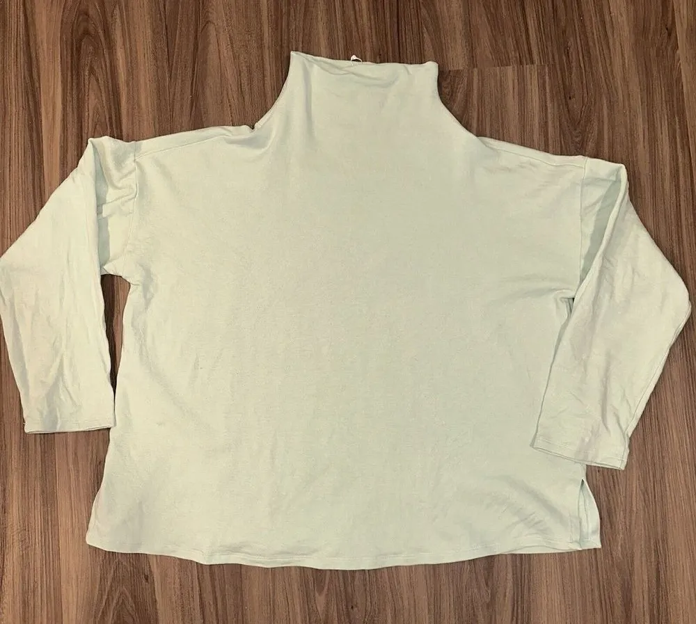 Keywords: turtleneck, light aqua, tencel, organic cotton, lyocell, relaxed fit, minimalist, chic, luxe, long sleeve, versatile, everyday, sophisticated