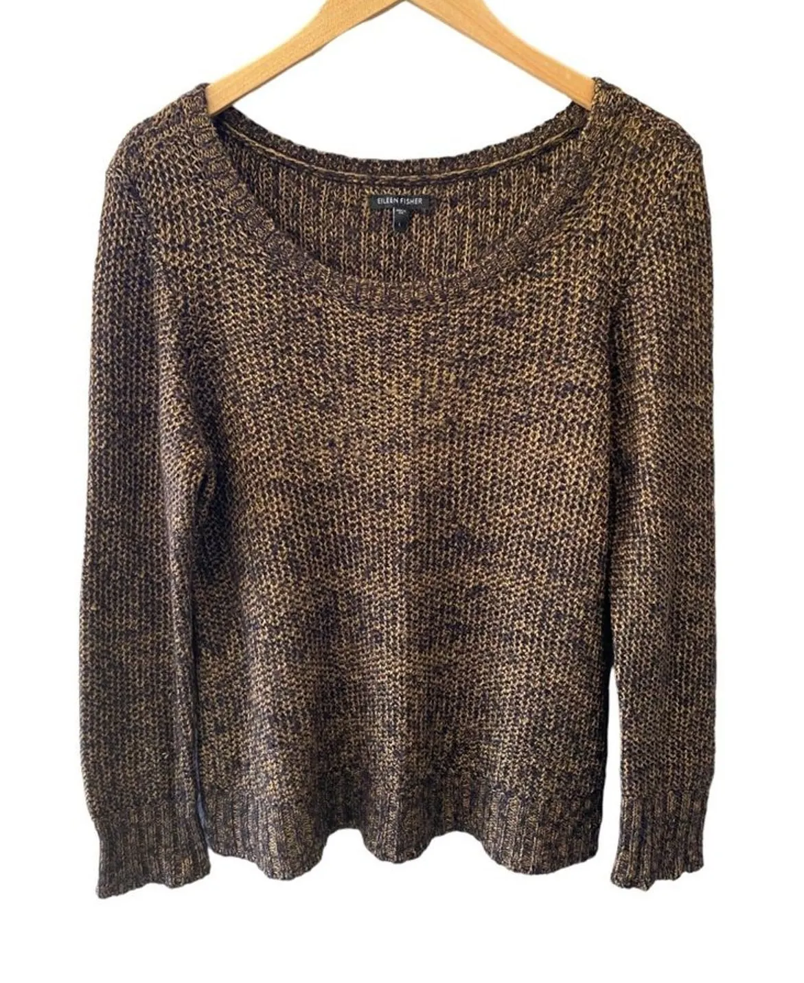 Eileen Fisher Gold Metallic Sheen Mohair Alpaca Knit Sweater. Size Large. Material: 45% Viscose, 36... Show more