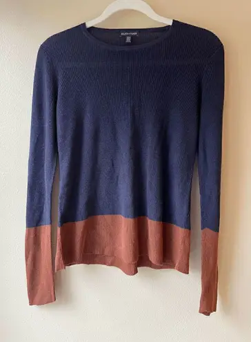 Used - excellent pre-owned condition Eileen Fisher Navy Blue and Brow Silk Blend Sweater Women's Siz... Show more