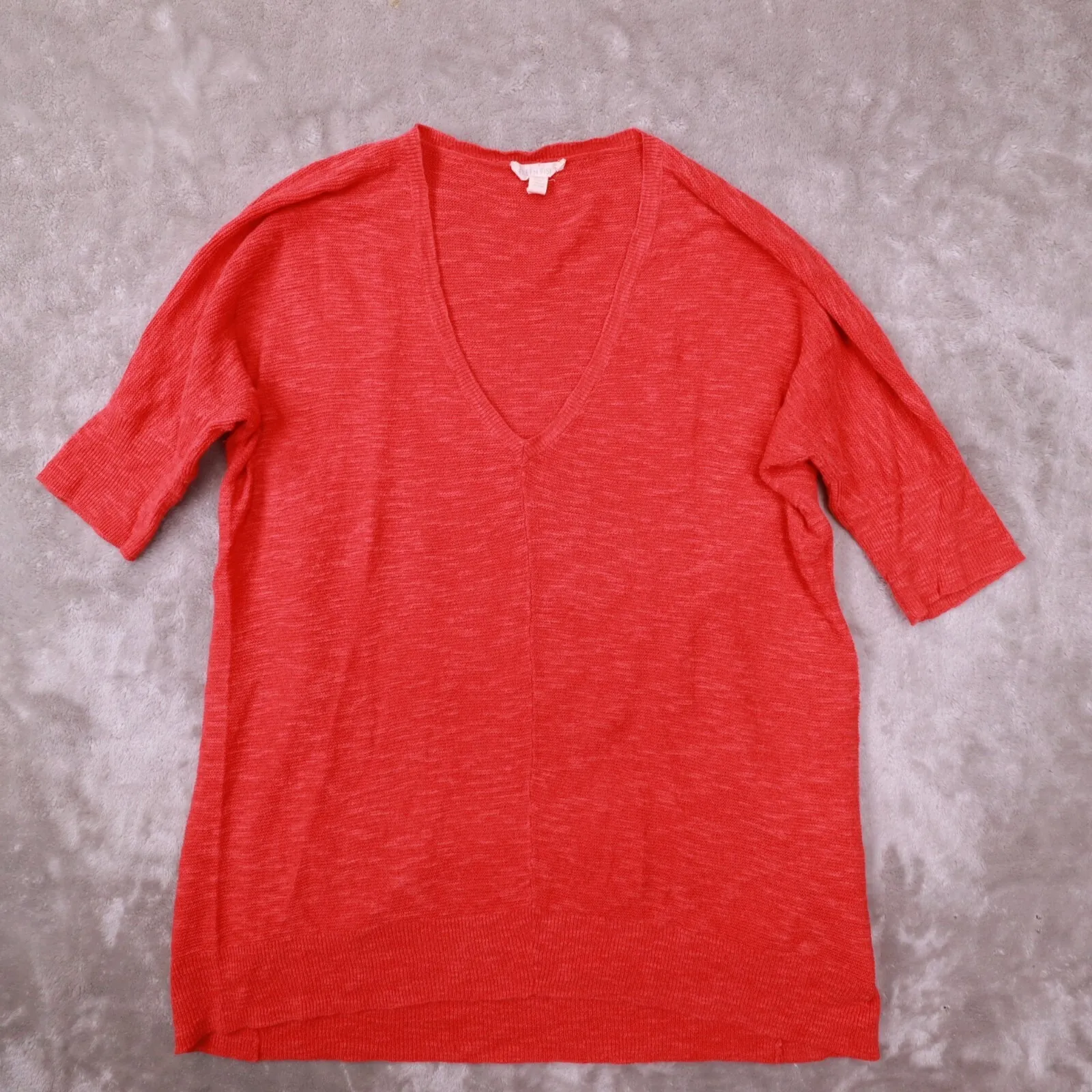 The Eileen Fisher Orange V Neck Short Sleeve Organic Cotton Linen Sweater in size XS is a stylish an... Show more