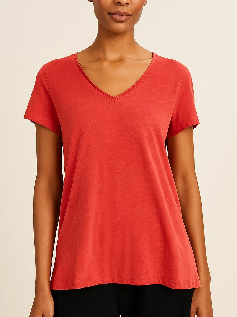 Eileen Fisher Organic Cotton Pink V-Neck Short Sleeve T-Shirt Size X-Small NWOT - $30 - From Shelby