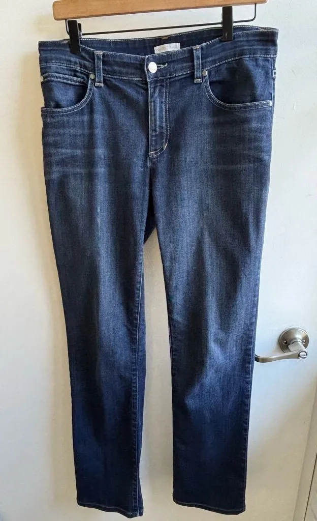 Eileen Fisher Organic Cotton Straight Leg Jeans in dark blue wash. Size 6. Excellent used condition