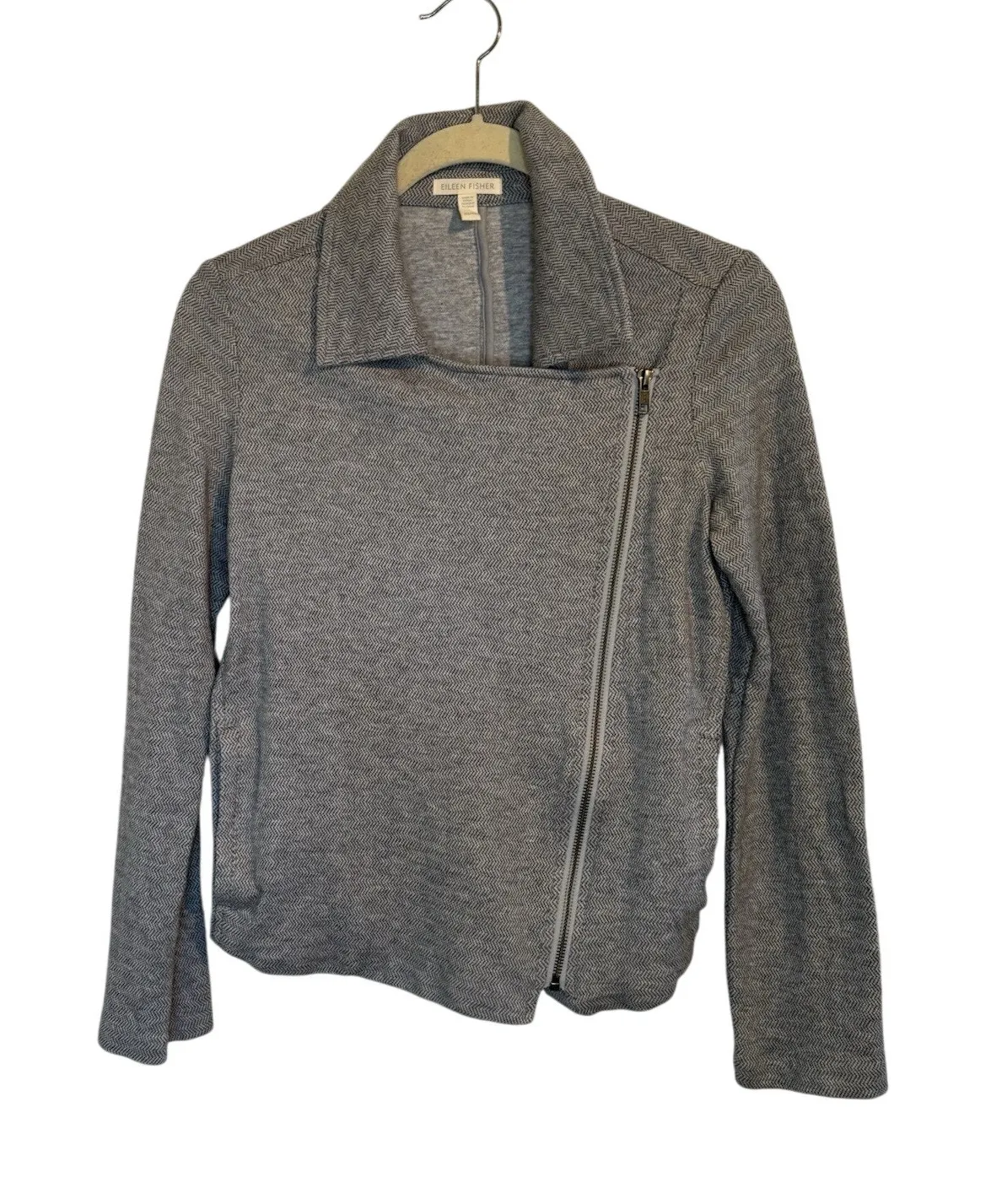 EILEEN FISHER | Gray Herringbone Moon Organic Cotton Tweed Zip Moto Jacket XS Eileen Fisher Gray... Show more