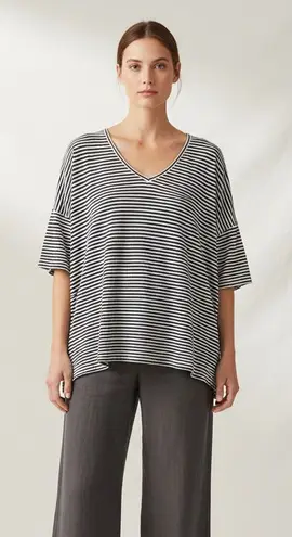 Eileen Fisher Organic Linen Black White Striped V-Neck T-Shirt Size Large NWOT - $35 - From Shelby