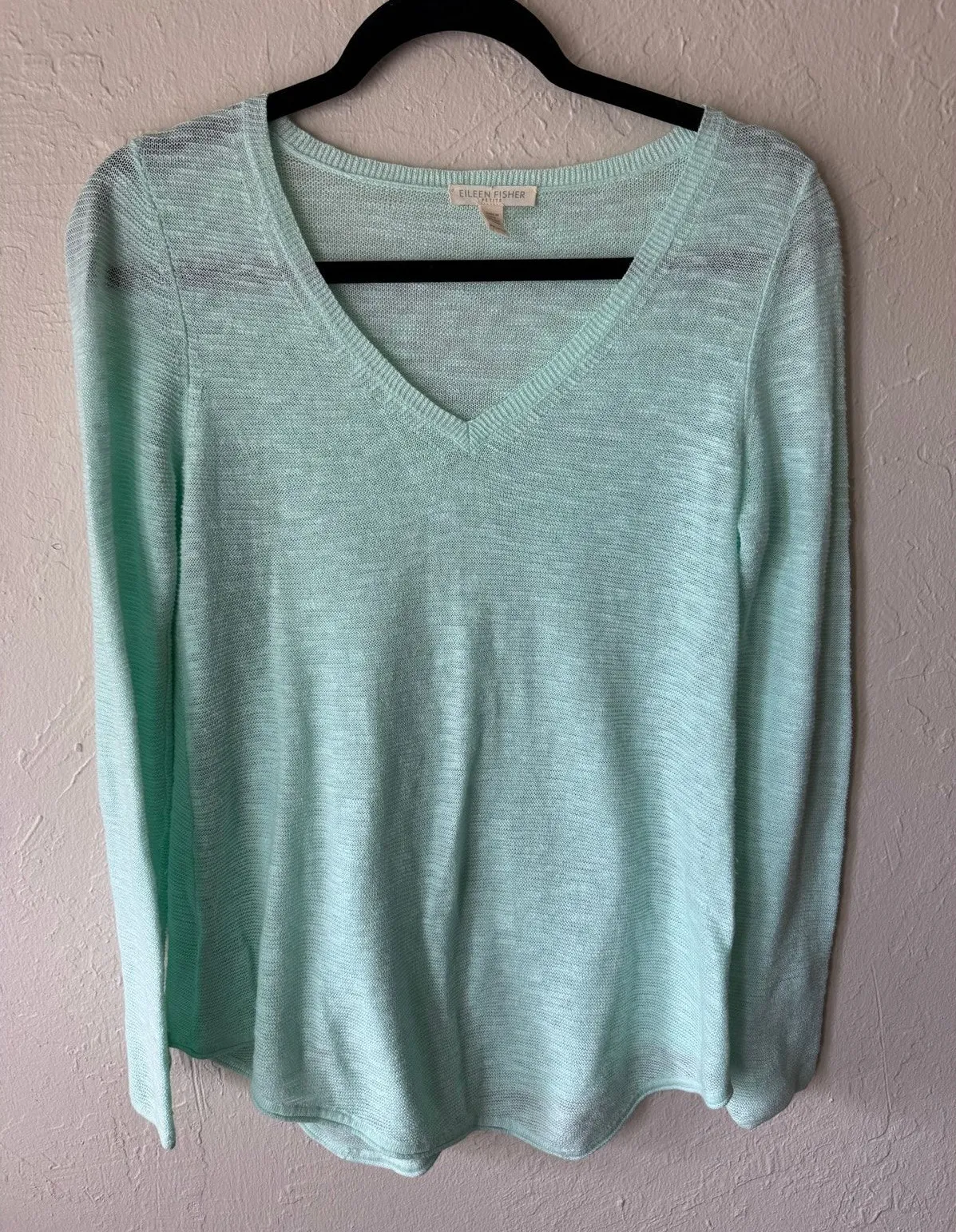 Excellent condition size petite organic linen/ cotton blend beautiful light blue color