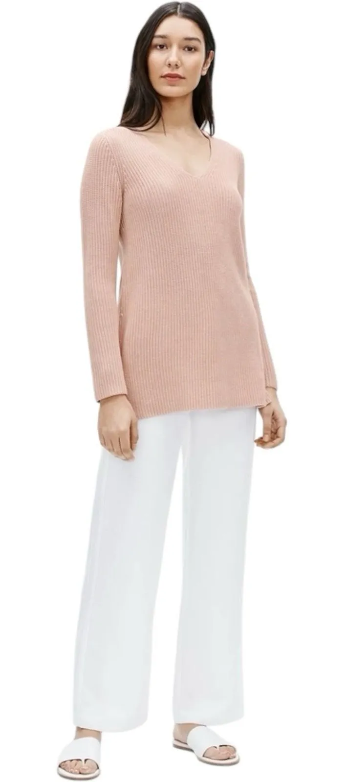 Eileen Fisher Organic Linen Cotton V-Neck Long Sleeve Pink Tunic Sweater MED $198 Very gently prelo... Show more