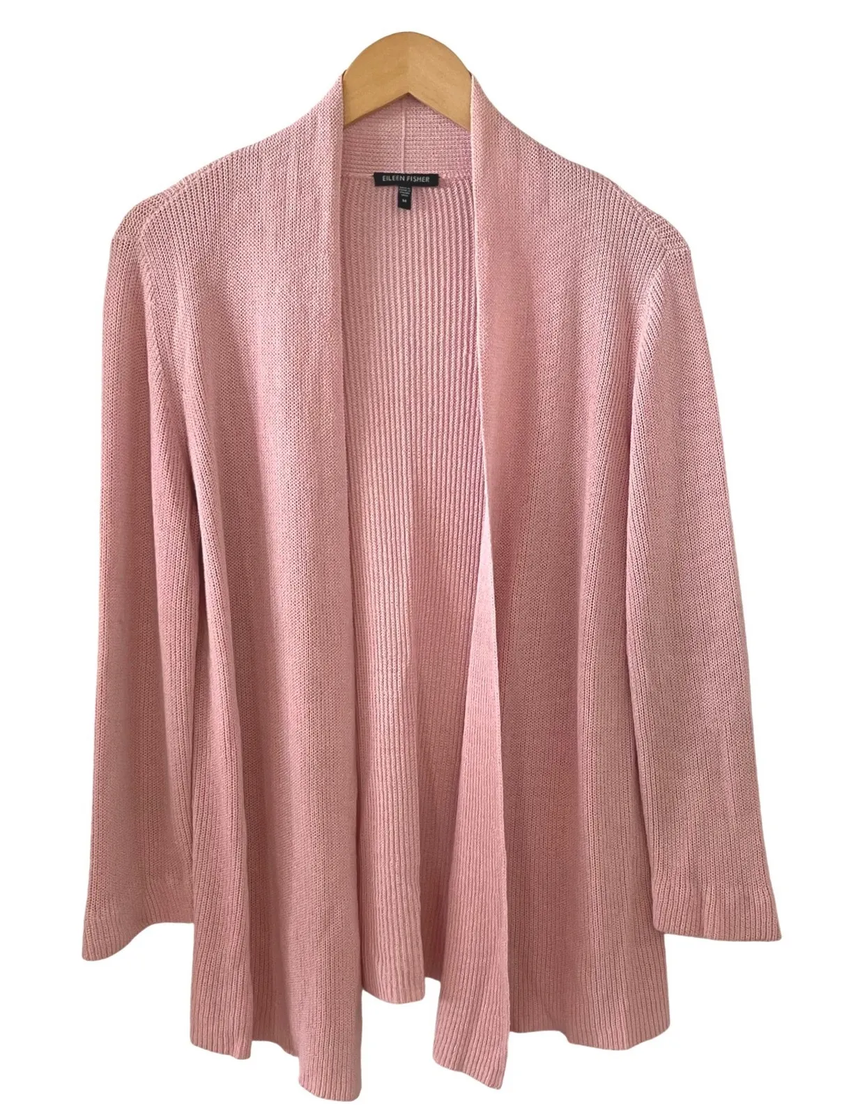 EILEEN FISHER open front cardigan sweater in a soft pink hue. This effortlessly chic knit offers a... Show more