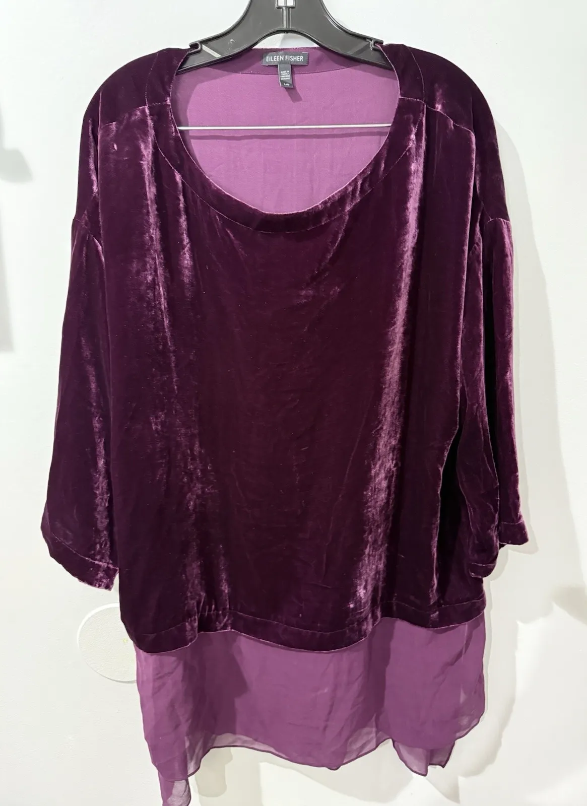 Eileen Fisher Raisonette Bateau Neck Velvet Sheer Hi-Lo Hem‎ Top Size Large U Purple - $45 - From ivette