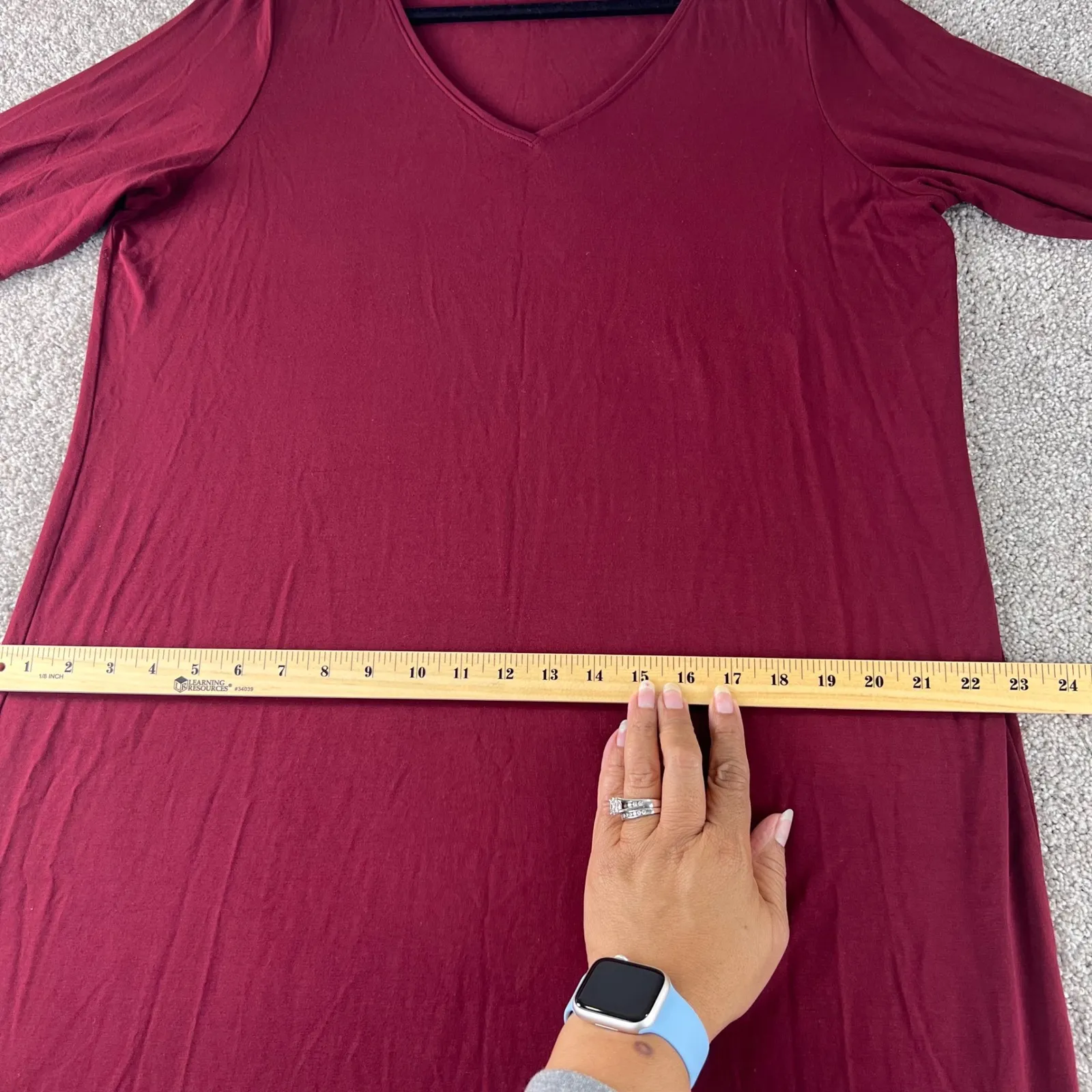 Measurements: • Pit to pit: 23 inches • Length: 39 inches Keywords: Eileen Fisher, Red Dress, Long... Show more