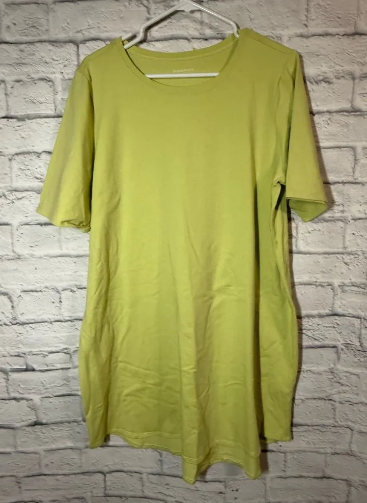 Small spot on sleeve, shown in photo. 23in pit to pit, 34in long in front, 36in long in back. Light... Show more