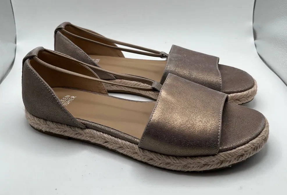 Eileen Fisher Shoes Mews Leather Slip-On Espadrilles Peep Toe Metallic Gold 8.5 - $30 - From Eva