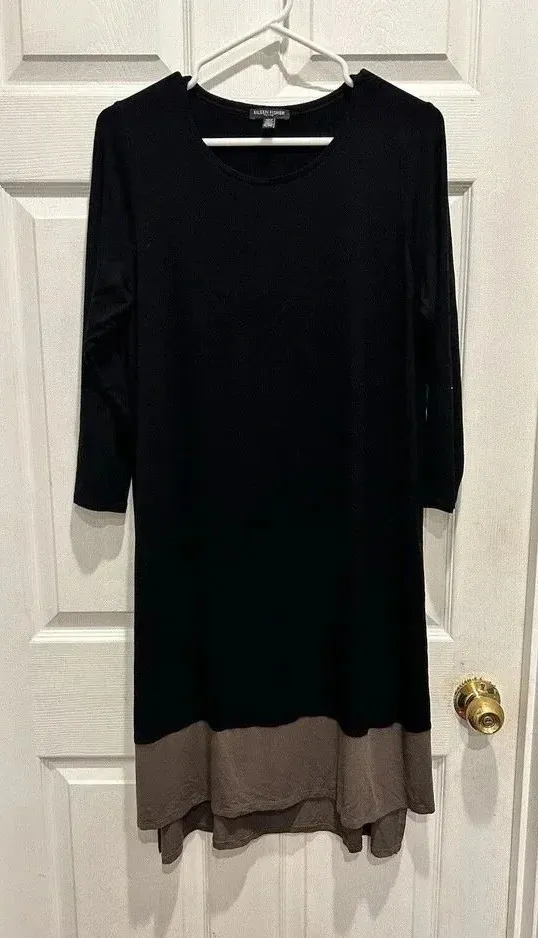 Eileen Fisher Size Large Petite Jersey Colorblock Dress Lagenlook Comfort Euc. No flaws. Viscose spa... Show more