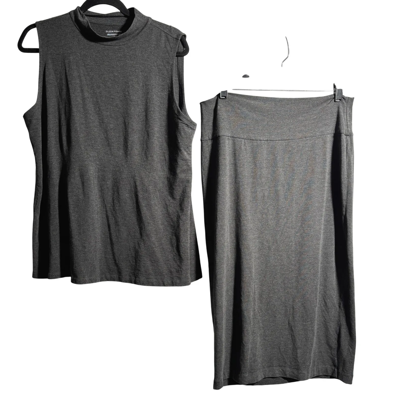 EILEEN FISHER Sleeveless Mock Neck Top and Pencil Skirt Set Charcoal Gray M/L Keywords: Eileen Fish... Show more