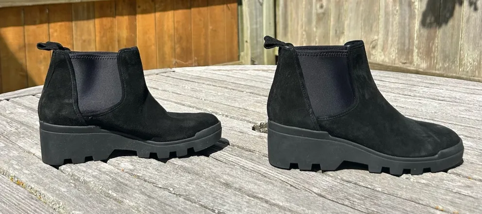 Eileen Fisher Splash Waterproof Suede Chelsea Bootie in Black, size 5.5 Has a few marks as shown 1... Show more