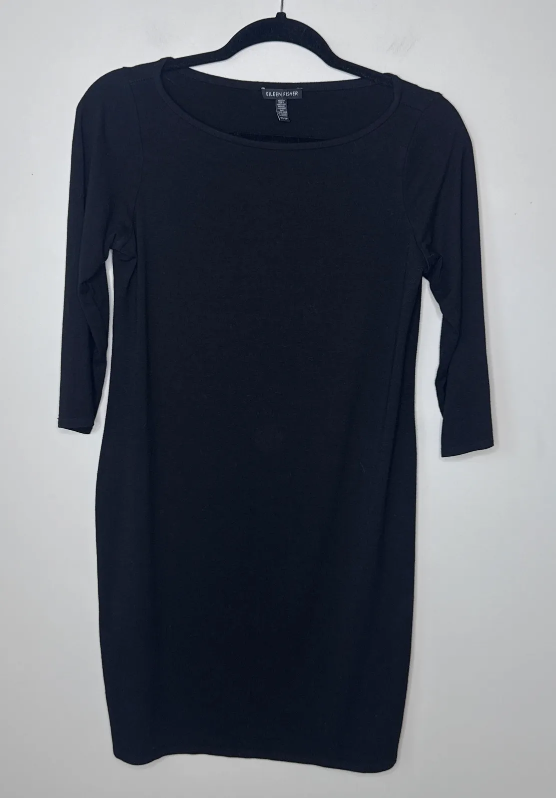 Eileen Fisher Stretch Jersey Knit Jewel Neck Black Dress Size XS * 3/4 sleeves * viscose/spandex *... Show more