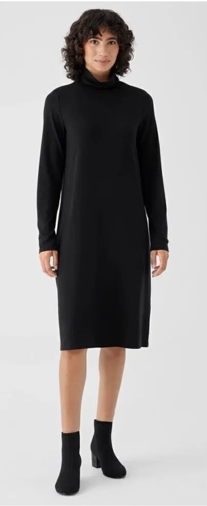 Eileen Fisher Stretch Jersey Knit Scrunch Neck Dress in Black. In good condition. Small hole near ba... Show more
