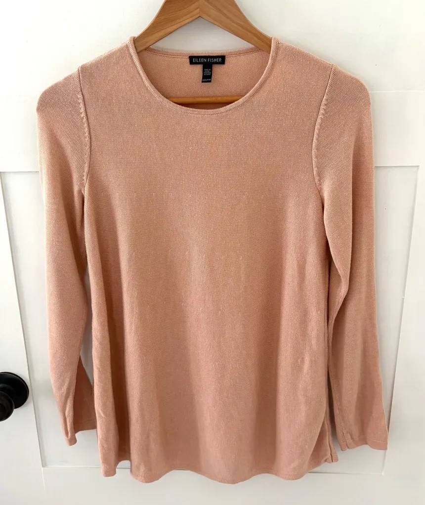 Great condition. Peachy pink color. Rolled hem. A bit oversized. 15.5” flat pit to pit 26” length