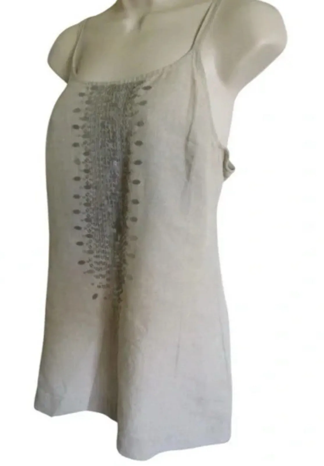 The Eileen Fisher Top in size Women's Large is a beige organic linen camisole with strappy sleeves a... Show more