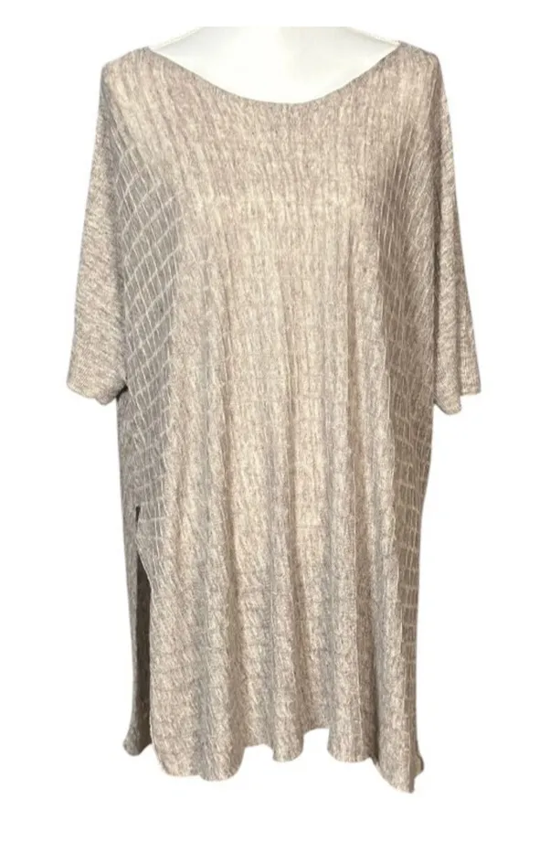Beige box-textured knit Bateau neckline Short sleeves Dropped shoulders Side slits Made of Italian y... Show more