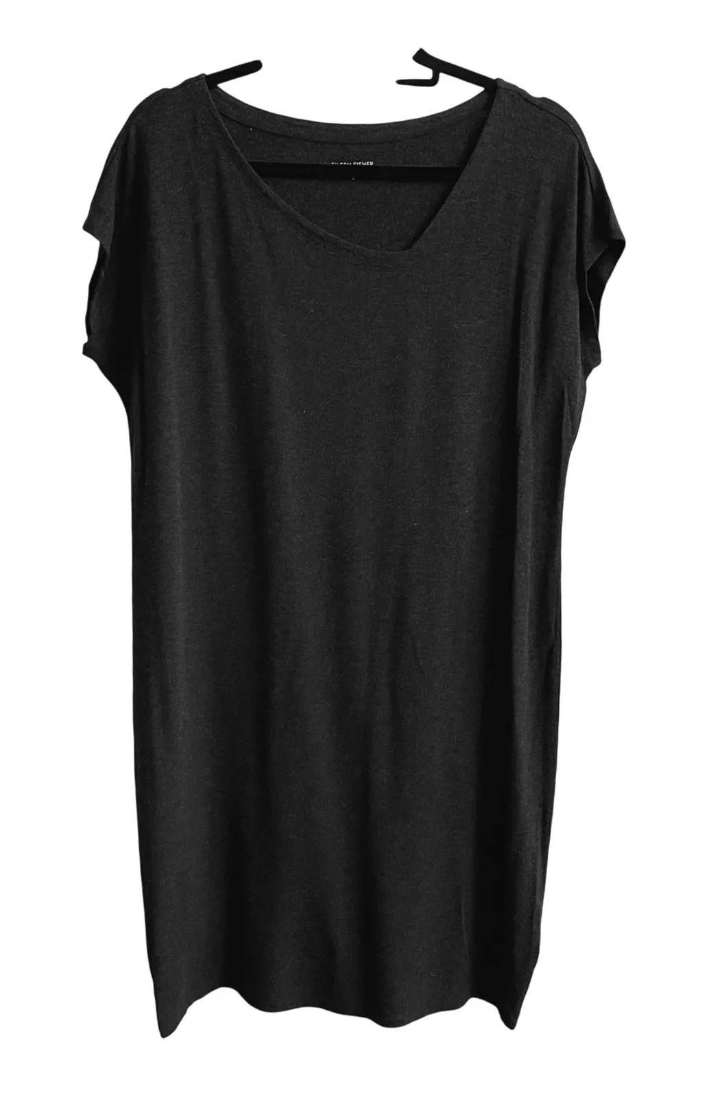 Eileen Fisher black v-neck tunic dress crafted from Italian yarn. This versatile dress features a fl... Show more