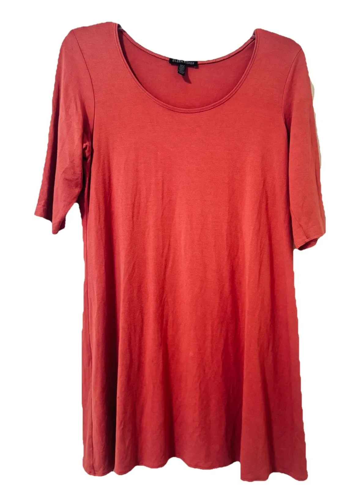Eileen Fisher Shirt Scoop Neck Stretch Swing Tunic Knit Top Size M Clay Coral Eileen Fisher Viscose... Show more