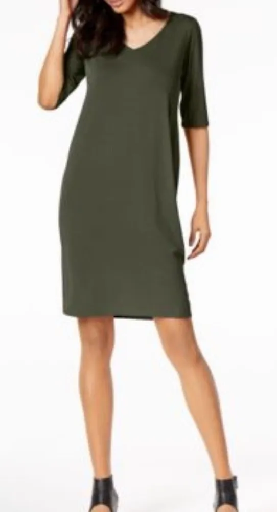 Eileen Fisher Viscose Jersey V Neck Dress in Green Size XS Excellent Used Condition Simple and... Show more
