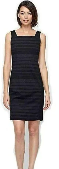 EILEEN FISHER Women's Charcoal Black Striped Ponte Square Neck Dress Size 2 Muted stripes with solid... Show more