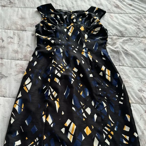 Elevate Your Style with Tahari Arthur S Levine Dress - Size 6 Elevate your wardrobe with this stunning Tahari Arthur S Levine dress in a size 6. The geometric pattern in black, yellow and blue exudes sophistication, while the exposed zipper on the back adds a touch of edginess. Made with a lined interior, this dress is not only stylish but also comfortable to wear. Perfect for any formal occasion, this dress will make you stand out from the crowd. Shell is 100% polyester, lining is 100% acetate. Size 6 - Geometric pattern in timeless black - Exposed zipper for added edge - Lined interior for comfort - Size 6 for a perfect fit Excellent condition. We always ship the next day.