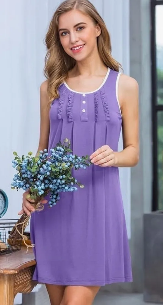 Brand: Ekouaer Size: XL Color: Purple Condition: NWT Super-soft fabric: Sleeveless Nightgowns made of super soft material. Extra soft, comfy, and breathable nightshirt. Feature:The classic sleeveless night shirts is defined by romantic details, the contrast scoopneck, 36 decorative buttons and pretty ruffles in front for a touch of elegance. The unique design is great for every ladies to deserve to have a beautiful, ultra-soft, skin-friendly and breathable night dress for bedtime. Applicable occasions: Women's easy shapes and loose styles sleepwear are very suitable for sleeping, casual wear or free walking outdoors. Any season or simply for wearing around the house or lounging.