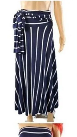 Elan navy and white striped, knit, convertible maxi skirt/dress. Great for summer days and vacations... Show more