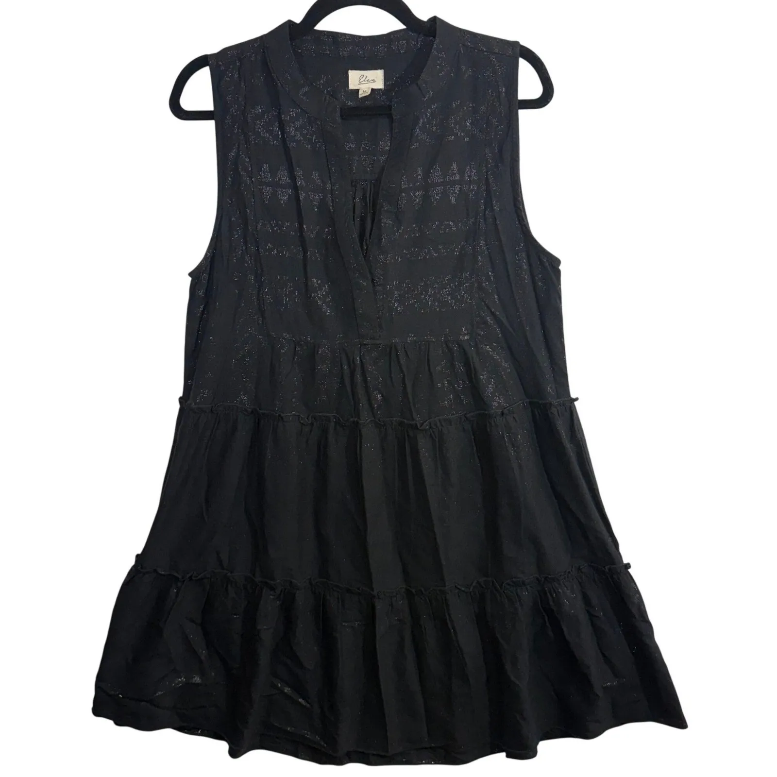 ✧ Size: Medium ✧ Color: Black with metallic thread accents ✧ Fabric: 47% Viscose, 47% Cotton, 6% Metallic Yarn ✧ Features: Split neckline, metallic shimmer, clasp closure at bust, tiered ruffle hem, sleeveless, mini length ✧ Condition: Gently pre-owned, minor fading throughout consistent with wash wear (see photos). No holes or stains boho, metallic, shimmer, sparkle, cottagecore, coastal, airy, lightacademia, darkacademia, romantic, minimalist, effortless, feminine, softgoth, witchy, fairy ✰ Please review all photos for condition & measurements ✰ Measurements approx./in inches (measure your fave garment for best reference) ✰ Ships QUICK on same/next business day ✰ Items stored in sealed polybag/smoke & pet-free environment ✰ Colors may appear differently depending on your screen settings ✰ 1902