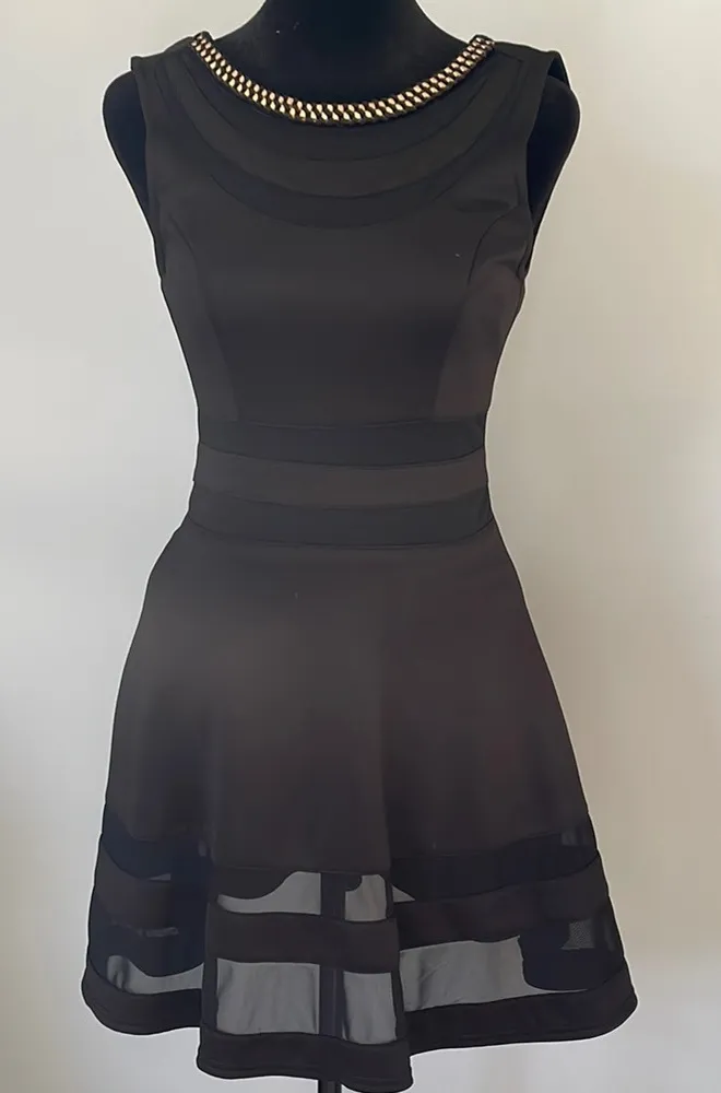 Elegant Black Sleeveless Dress with gold accents at neck - $13 - From Lisa