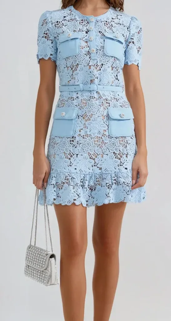 Elegant Blue Lace Dress — Missime Lace Mini Dress with Pocket Details - $115 New With Tags - From Lissie