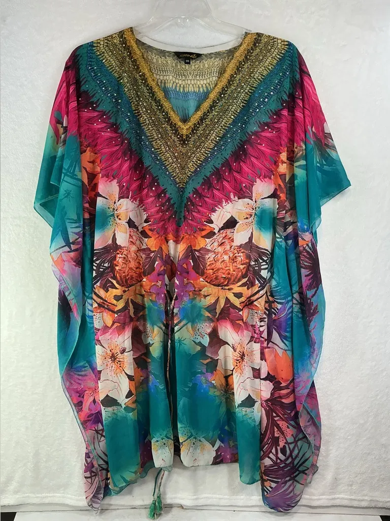Discover elegance with this stunning women's tunic, featuring a beautiful floral design in teal and pink. Perfect for any occasion, this top combines style and comfort effortlessly.