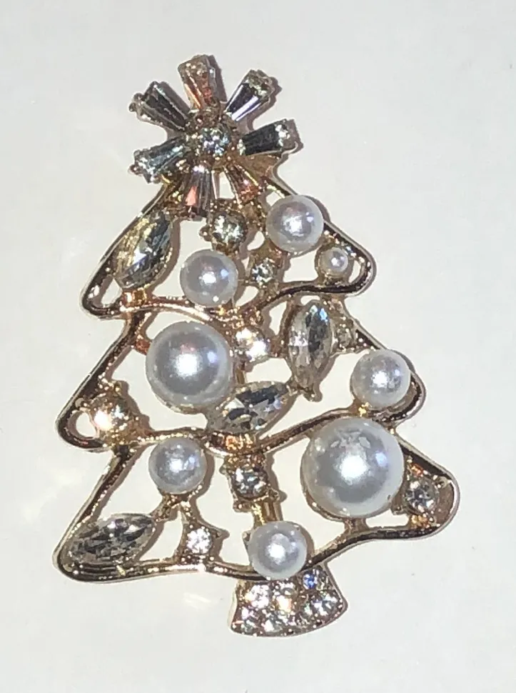 Celebrate the festive season with this elegant Christmas tree brooch. Featuring a stunning combination of gold tone and rhinestones, this piece is perfect for adding a touch of holiday sparkle to any outfit. New Approximately 1.25” x 1.75” D6 Boho Vintage Street Style Minimalist Statement Piece Essential Trendy Fashion Forward Must-Have On-Trend Cute Casual Edgy Classic Rare Find retro mid century modern estate jewelry costume jewelry