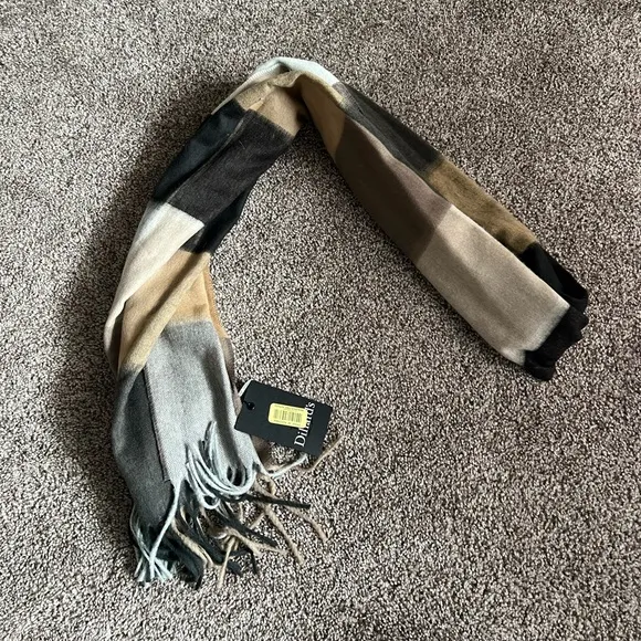 Elevate your style with this elegant multicolor scarf. Featuring a blend of black, gray, and tan, this accessory adds a sophisticated touch to any outfit. Perfect for any occasion.