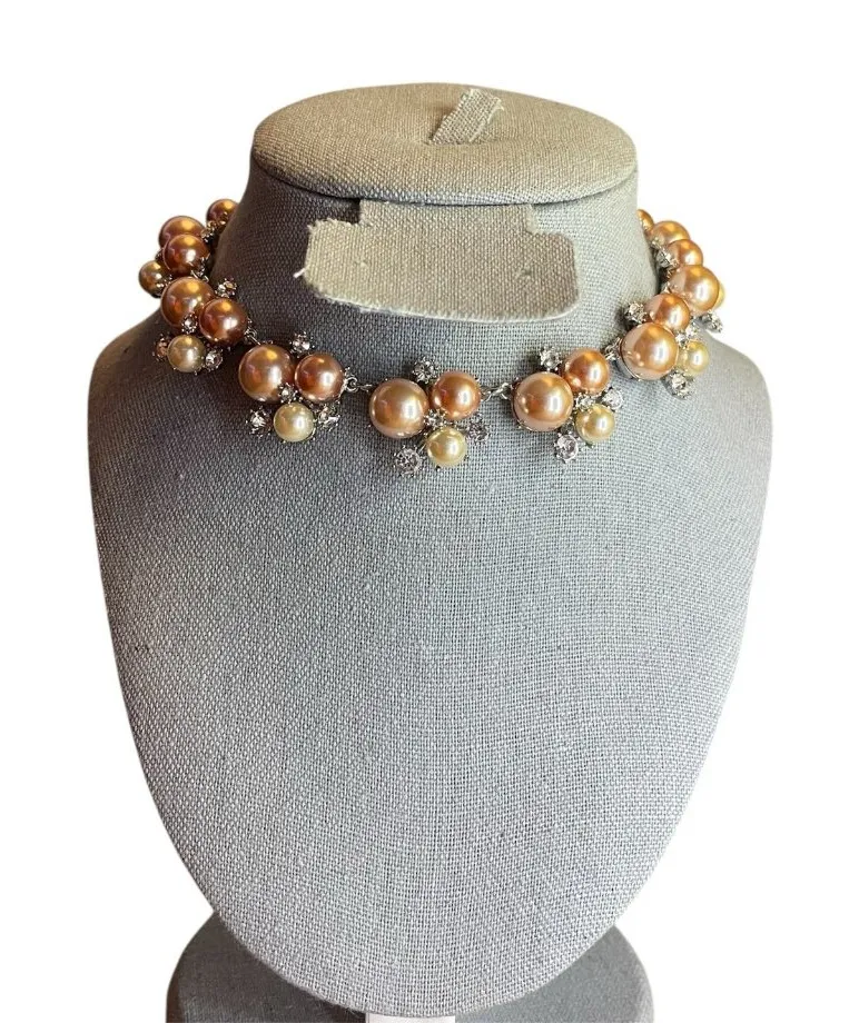 This delicate pearl and crystal necklace will elevate any outfit with its sophisticated charm. Whether you’re dressing up for a special occasion or looking for a chic touch for everyday wear, this beauty has you covered. - Brand new - Pearls with crystal accents - Elegant design for formal or casual wear - Ideal for weddings, parties, or adding a chic touch to any outfit - Length: 12 inches retro possibly vintage y2k made