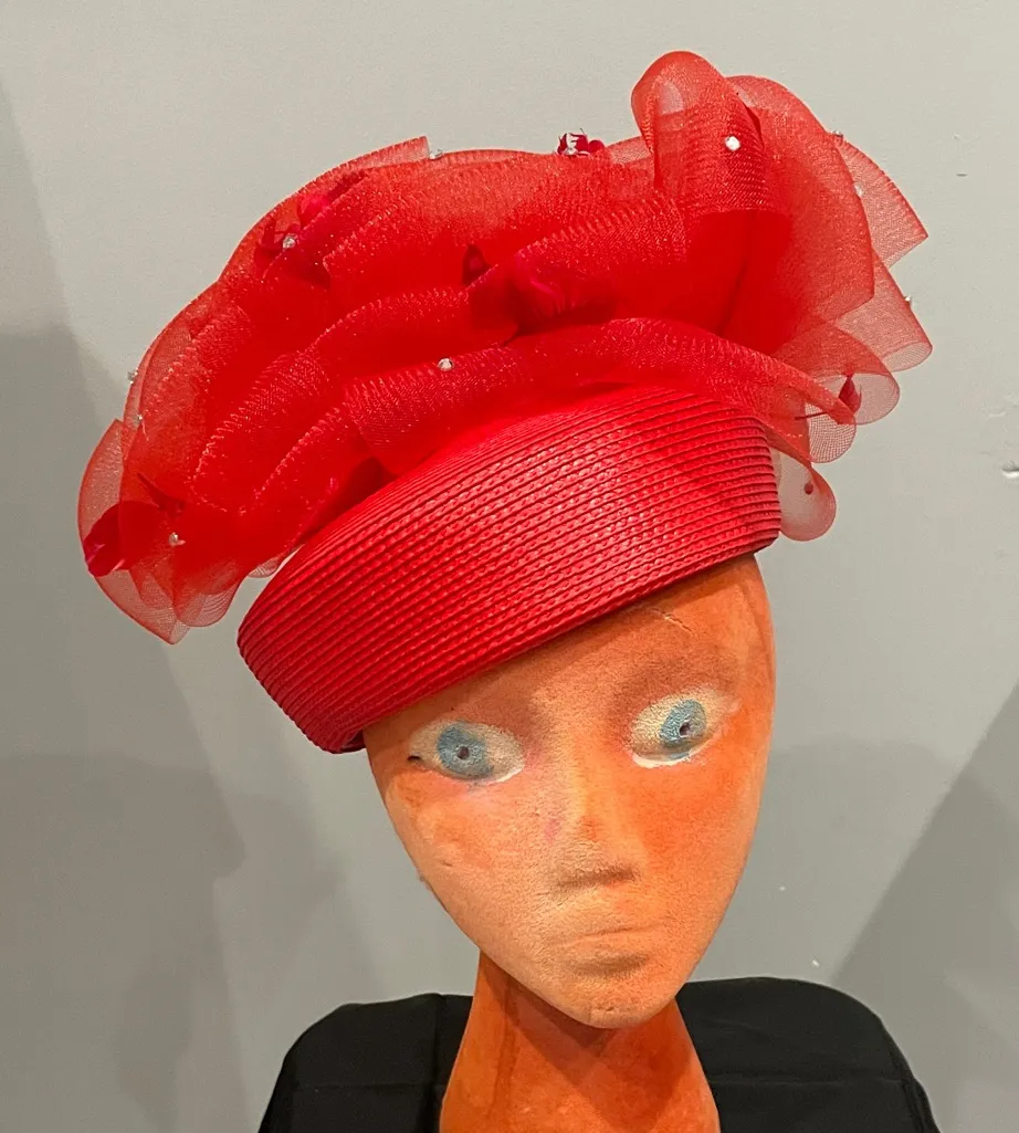 Elegant Red Fascinator Hat glam looks like new - $55 - From Lisa