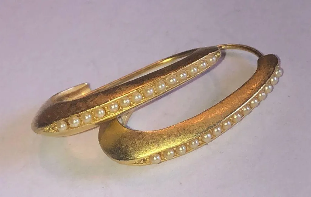 These stunning gold tone hoop earrings feature delicate faux pearl accents, perfect for adding a touch of elegance to any outfit. Ideal for both casual and formal occasions. Good condition Approximately 3/4” x 1.25” S26 Chic Boho Vintage Street Style Minimalist Statement Piece Essential Trendy Fashion Forward Must-Have On-Trend Cute Casual Edgy Classic Rare Find retro mid century modern estate jewelry costume jewelry