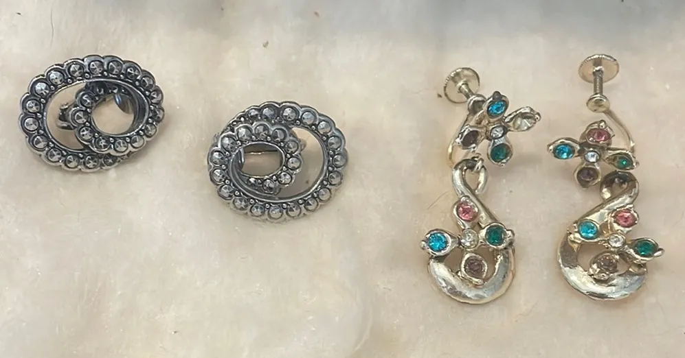 Elegant Silver clip on earrings Jewelry Set multi color stones vintage items - $25 - From Lisa