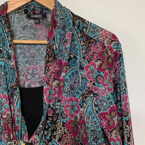 Elementz Magenta Teal Floral Paisley Print Dressy Top Size PXL Blue - $14 - From Elizabeth