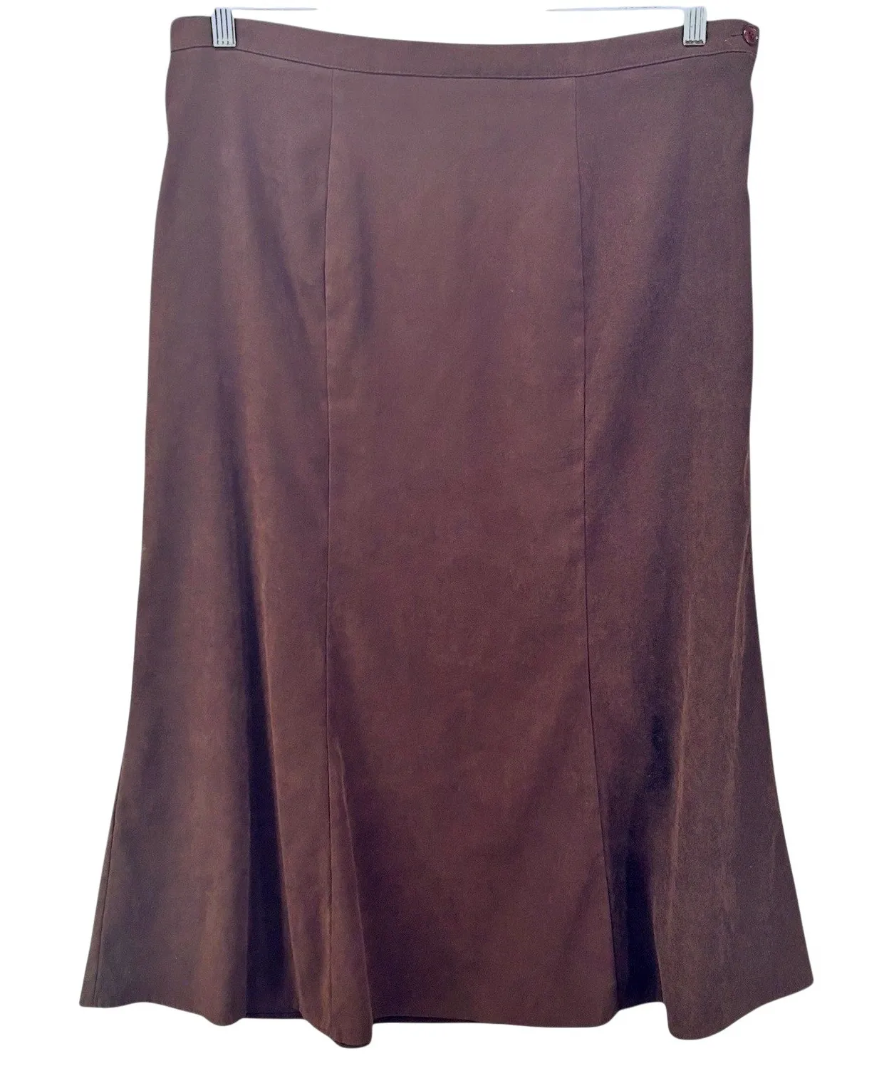 Rich, earthy sophistication exudes from this brown maxi skirt. Notice its flowing silhouette, perfect for elegant, refined style. Tailored with vertical paneling for a flattering shape and gentle flare at the hem, this skirt is fully lined for a comfortable feel and impeccable drape. The design includes a secure side zipper and subtle button closure at the waist, ensuring a sleek, streamlined fit. Its versatile nature makes it a stylish choice for any occasion, adding a touch of understated luxury to your wardrobe. Measurements: • Waist: 18 inches • Length: 33 inches Thank you for checking my item. If you have any questions before and after purchase, please contact me first. Items came from smoke free, dog friendly home Please check measurement before buying. Measurements are also on photo. My handling time is 1 business day. Bundle and save Have a great day!!!!!If the item is used, it was washed and I used a fabric softener which is either fresh scent, lemon, or lavender scent. If its new, I used Dryel.