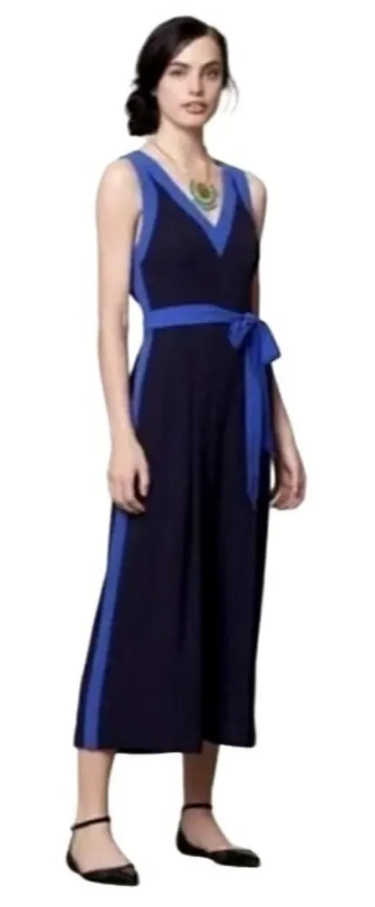 This jumpsuit from Elevenses by Anthropologie is in excellent condition. It is in an allover black color with blue trim. It features; v neckline, sleeveless, cut-out back with button details, tie at the waist, wide cropped length pants, back zipper closure, lined and is crafted from 100% polyester. Condition: Excellent Color: Black, Blue Material: Polyester Size: 0 Measurements: armpit to armpit 15.5 in, waist side to side 12.5 in, inseam 22 in, length 49 in, Chic style, Romance, Date, Love, sexy, romantic, Party, club wear, Work wear, office, designer, casual, classic, date night, night out, holiday, chic, trendy, stylish, comfortable, lightweight, vacation, travel, wide leg, fall color, slimming, form-flattering, chic, sophisticated, Deep V-Neck, V-Back, Plunged Neck, New, BNWT, cocktail, party, wedding, classy, chic, sleek, Size 0, XS, Anthro, Colorblock, Cut Out