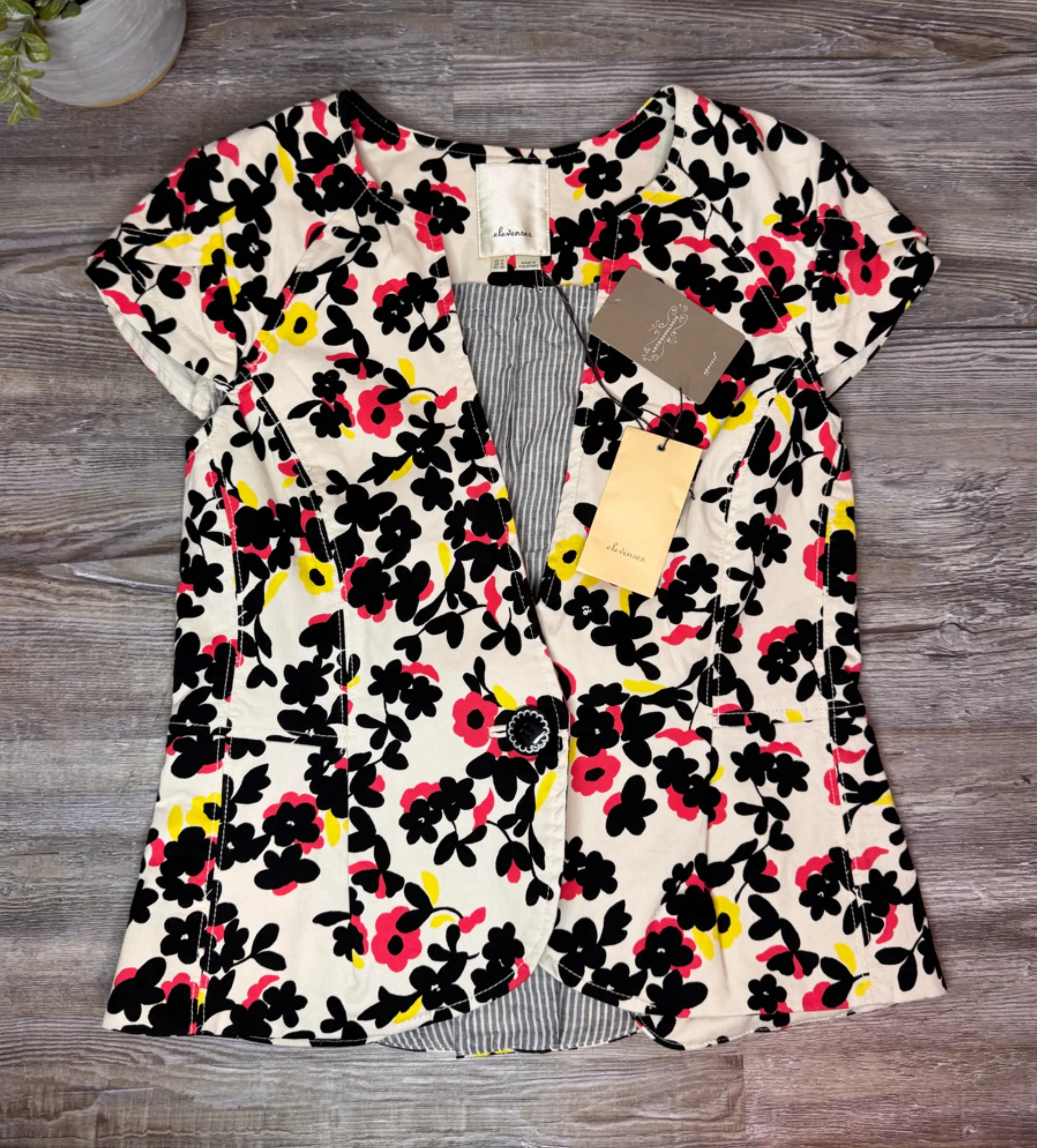 Elevenses Anthropologie Dahlia Pressed Floral Blazer Vest Buttons Size 4 Small Pink - $29 New With Tags - From Hailee
