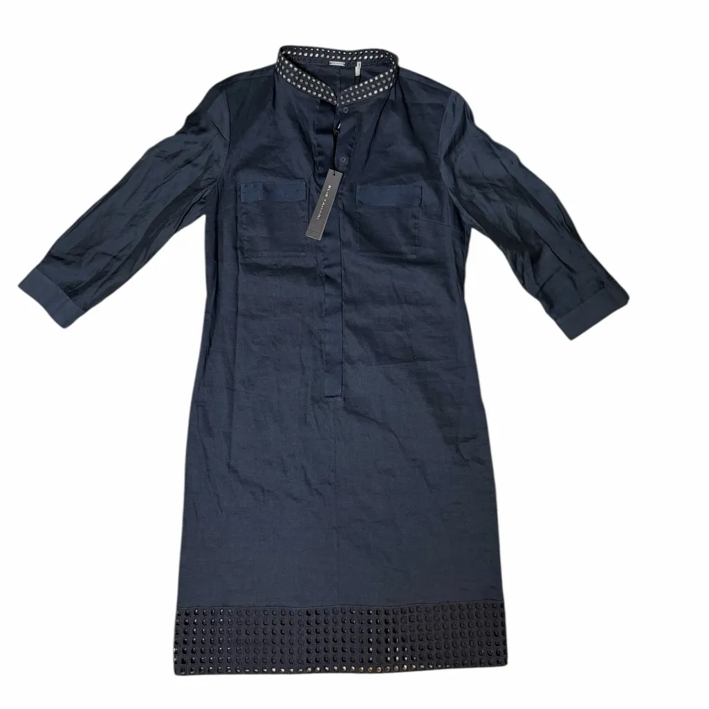 Brand: Elie Tahari Style: Austin Dress Size: US 6 (UK 10 / IT 42 / MEX 6) Color: Spring Navy Condition: New With Tags (NWT) Original Price: $348 Description: Chic, modern Elie Tahari “Austin” dress in a deep navy-blue tone with elevated laser-cut detailing. This polished shift-style dress features a sleek mandarin-style neckline, chest patch pockets, and stunning cutout detail along the collar and hem for a contemporary designer finish. Perfect for work, dinner, or events where you want effortless sophistication. Features: • Laser-cut detail at neckline & hem • Hidden button front closure • Two chest patch pockets • 3/4 sleeves • Lightweight, breathable fabric • Clean, structured silhouette Fabric: • Combo: Linen, Rayon/Viscose, Elastane blend • Trim: Cotton + Silk • Lining: Polyester / Polyurethane blend (full fabric breakdown shown in photos) Elie Tahari, designer dress, navy shift dress, workwear, office dress, minimalist style, polished, career wear, modern classic, evening dress, luxury brand, structured dress, laser cut dress, mandarin collar