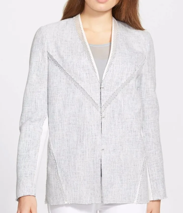 Elie Tahari Mixed Media Blue Tweed Cream Faux Leather Mesh Jacket Blazer size XS - $90 - From Aimee