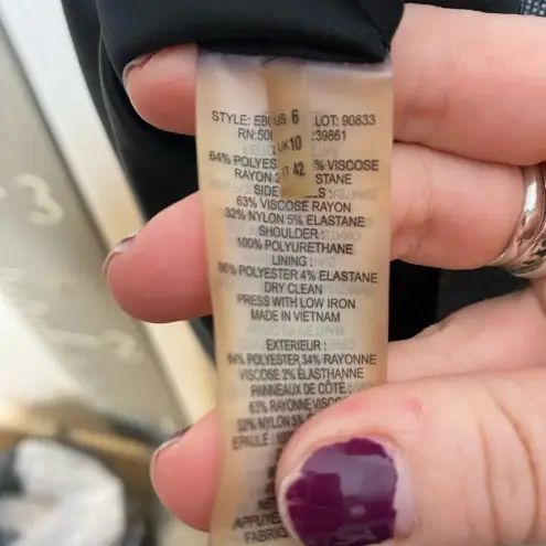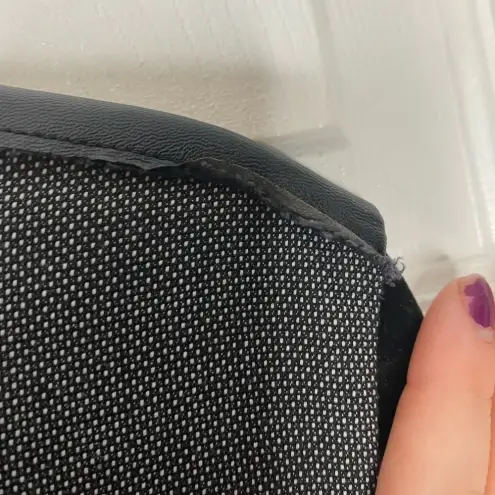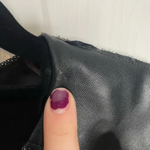 Great preowned condition (few minor flaws with leather on the shoulders are shown in the last photos) Size 6 Leather Panels on shoulders Black area of dress is very slimming Zipper back closure Dress does have inside snaps to hold bra straps in place